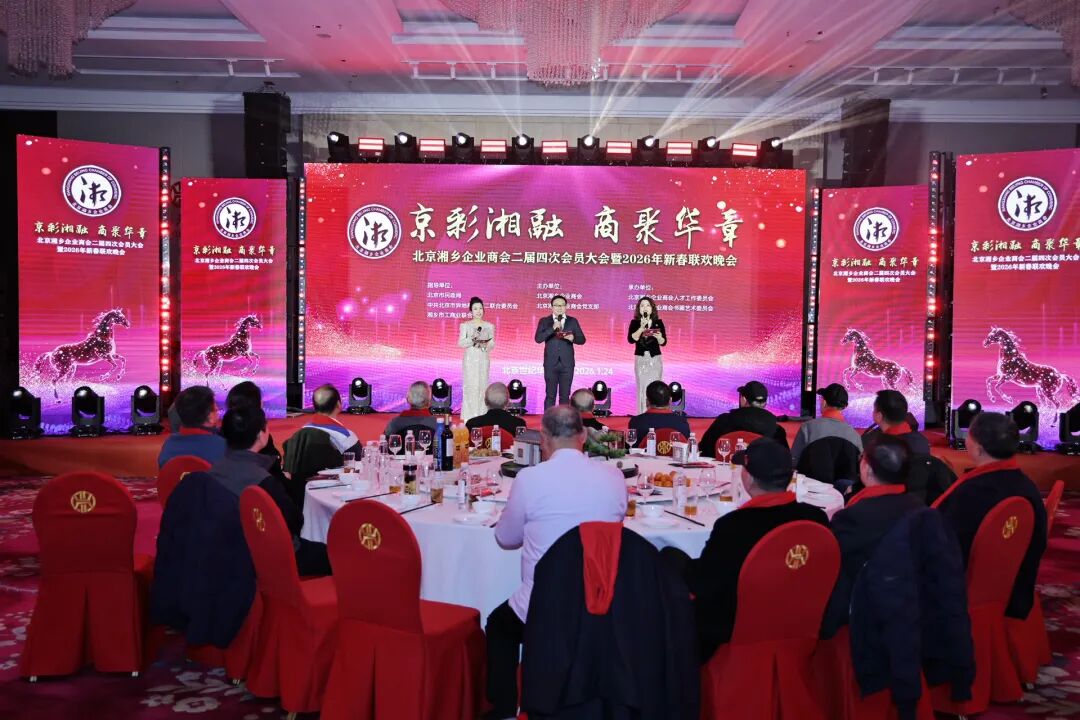 1月24日下午,以“京彩湘融 商聚华章”为主题的北京湘乡企业商会(以下简称湘乡商会)二届四次会员大会暨2026年新春联欢会在世纪华天大酒店召开。湘潭市人大常委会副主任,湘乡市委书记赵新文,中共北京市异地商会第二联合委员会专职副书记许彬应邀出席并讲话。