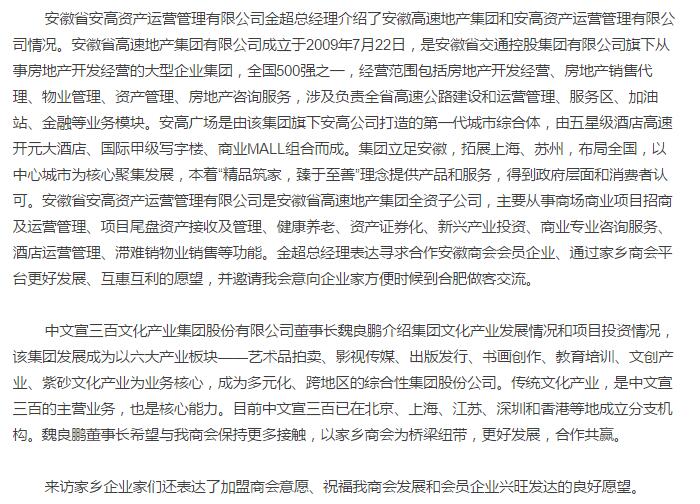 北京安徽企业商会二届五次会员大会暨新老会员交流会召开