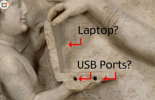 StillSpeakingOut解释称,这个雕像中的物体看起来非常像现代笔记本电脑,甚至还有USB接口。
