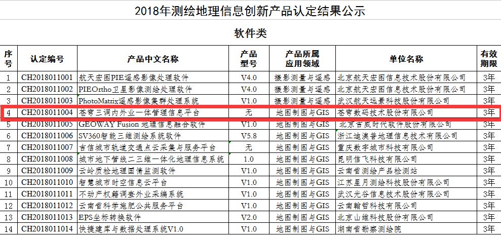 日前,中国测绘学会官网发布了《2018年测绘地理信息自主创新产品认定结果公告》。
