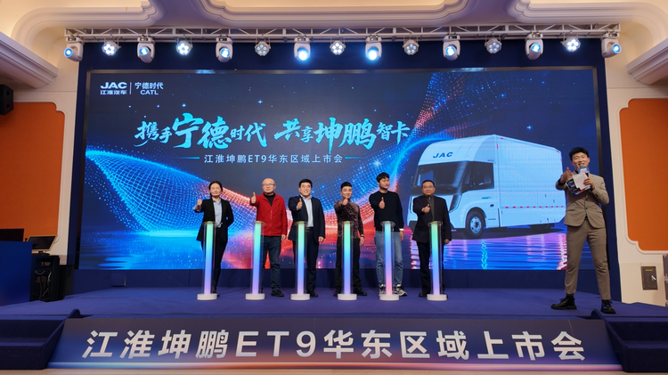 发布会现场在众多用户及行业媒体的见证下,江淮1卡坤鹏ET9举行了华东区域上市发布仪式。作为华东地区物流运输的新选择,坤鹏ET9将有效缓解当地货运行业的效率焦虑与成本压力,为城配、城际双场景运输提供高效解决方案。