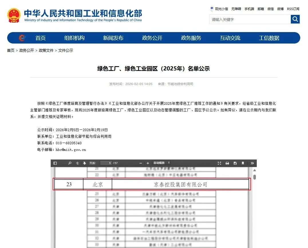 它不是一句口号,也不是一张简单的标签。此次评选严格依据《绿色工厂梯度培育及管理暂行办法》及工信部关于开展2025年度绿色工厂推荐工作的通知要求进行,是对企业在用地集约化、原料无害化、生产洁净化、废物资源化、能源低碳化等维度的全面考量。“国家级绿色工厂”的称号,意味着企业在基础设施、管理体系、能源投入、环境排放等多个维度均达到了行业领先水平。在这场严苛的遴选里,京泰控股集团用实力作答。