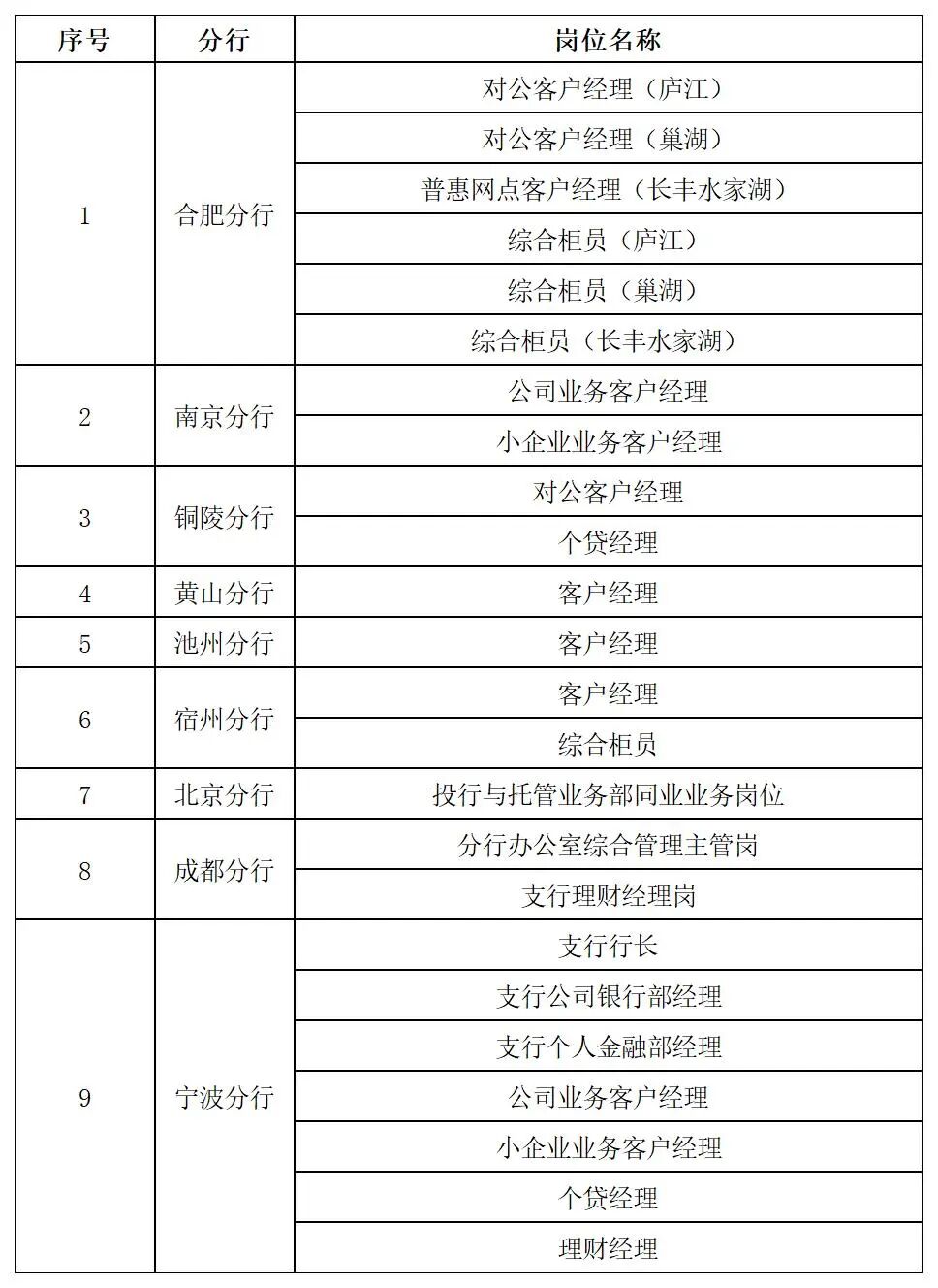 根据业务发展需要,徽商银行部分岗位现面向社会公开招聘,岗位明细及相关须知如下: